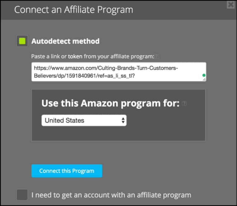 Copy your affiliate URL from the address bar it will auto-detect the region but do cross-check before clicking “Connect this program”.