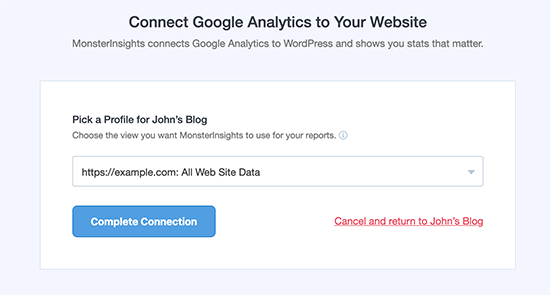 In the next step, you could see all the Google Analytics property which are associated with your Google account. From that page, choose your Analytics property, complete the connection.