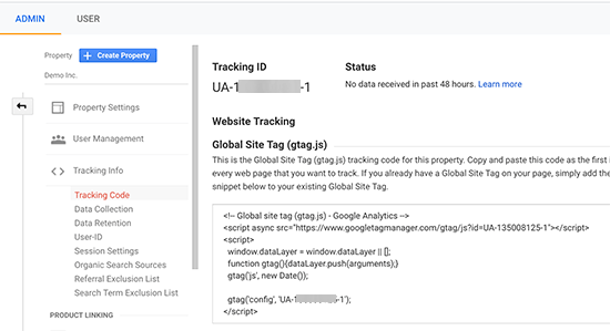 From the Google Analytics admin settings, you could get the tracking ID and code!