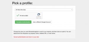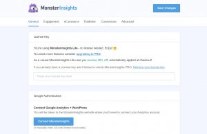 Now you will we be redirected to the configuration page in MonsterInsights. If you have license key just past it on the license key box.