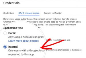 After that, a new tab will be open and you’ll see some settings. If you have a Gsuite account, select into the internal.