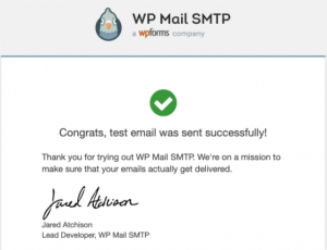 After that you’ll be returned to your WP Mail SMTP settings and success message will be displayed.