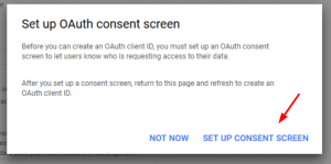 Once you set these fields click “What Credentials do I need?” button. Then you will get a popup like a setup consent screen, click on the setup consent screen.