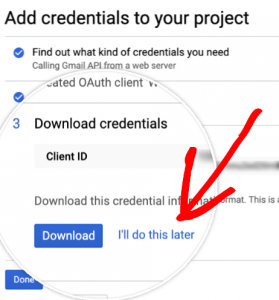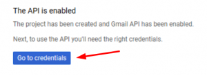 After click “continue” on the screen that says ” API is Enabled”, then click Go to Credentials button.