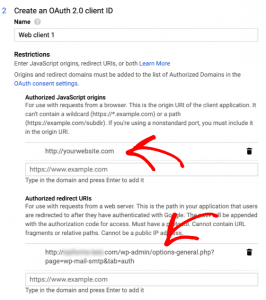 Copy that URL and go to Google APIs page and paste it into the field under Authorized redirect URIs.